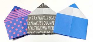 四等分になるように点線にそって折り目をつけます 上は1マス分、下は2マス分イラスト図の点線にそって折ります 短くおった部分を下に谷折りにします 下のブロックを上に折ります はみ出る部分を谷折りにして手前に折ります 点線の […]