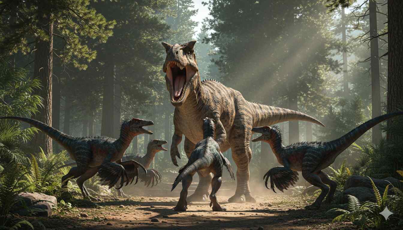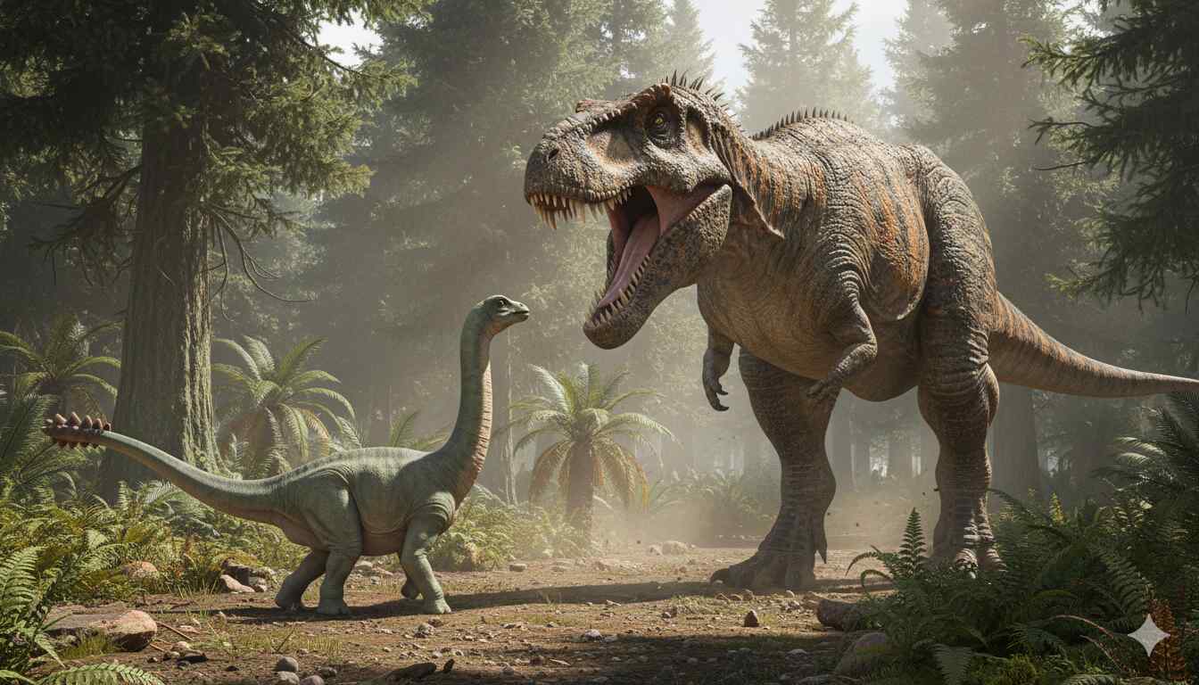 島嶼環境。頂点捕食者 vs 竜脚類の幼体。