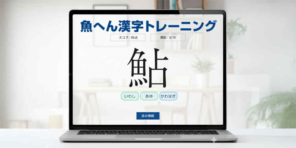 中学生〜大人向け|魚へん+魚の名前 60問クイズ + カードめくり